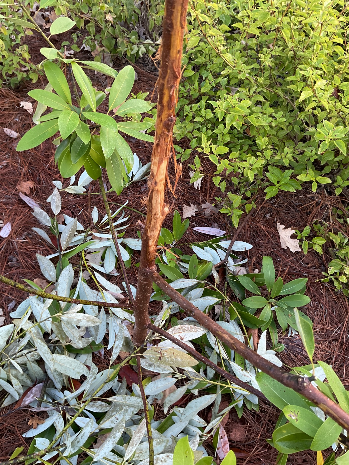 After planting the front entrance in August, I checked the new additions religiously for any signs of deer damage. After a couple of weeks, I finally breathed a sigh of relief. That is, until one fateful morning in November when I drove through the entrance and was literally stopped in my tracks. The deer hadn't touched a single perennial or shrub—but they had discovered our newly planted Magnolia virginiana (Sweetbay Magnolia). Four of the ten trees had been stripped of nearly all their branches and foliage, the debris scattered in a neat little ring at each trunk, completely uneaten. My heart sank as the realization hit me: I'd completely forgotten about the behavior of male deer preparing for rutting season.