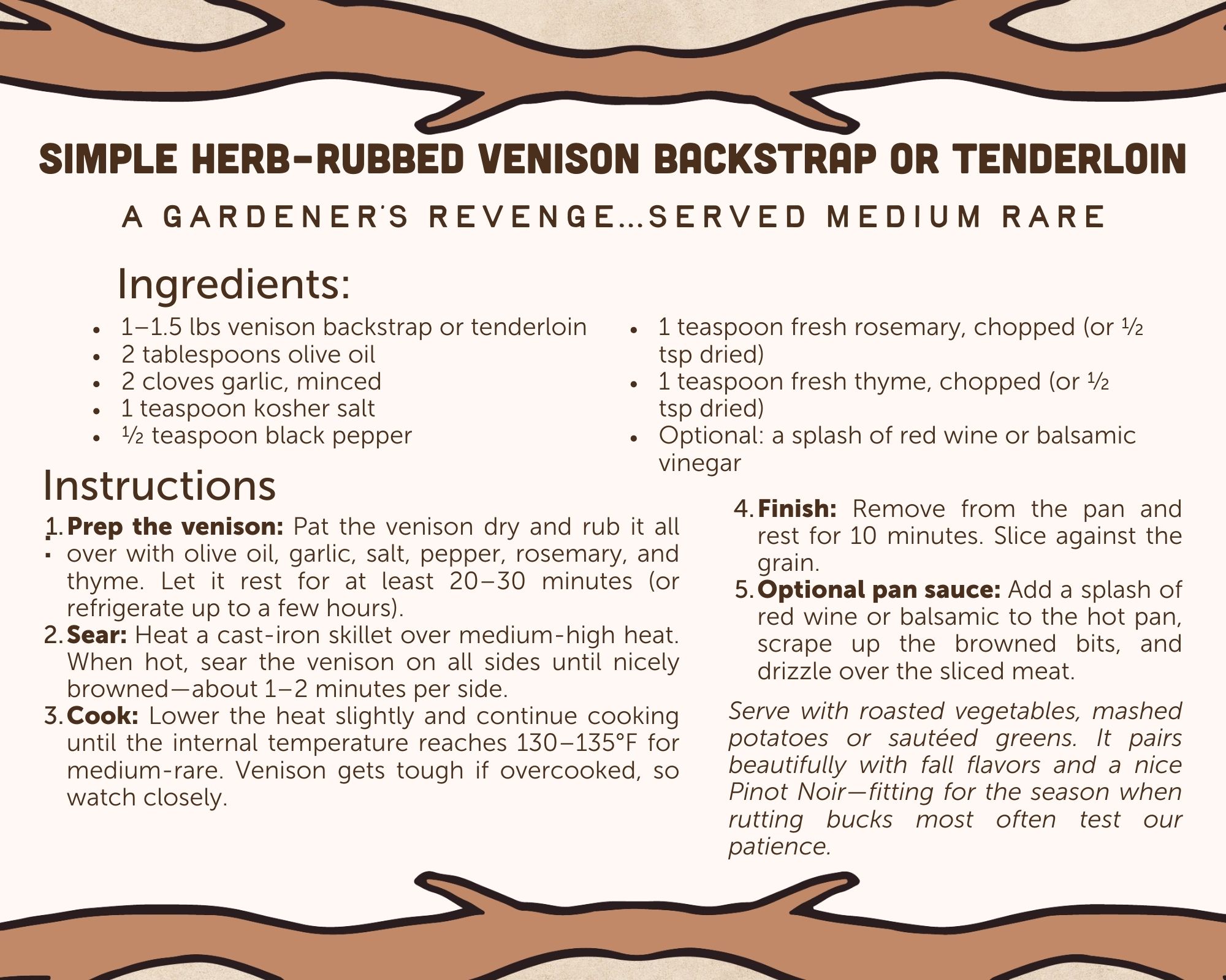 And if you ever need a little culinary consolation after discovering fresh deer damage… well, here's one way to turn frustration into dinner.