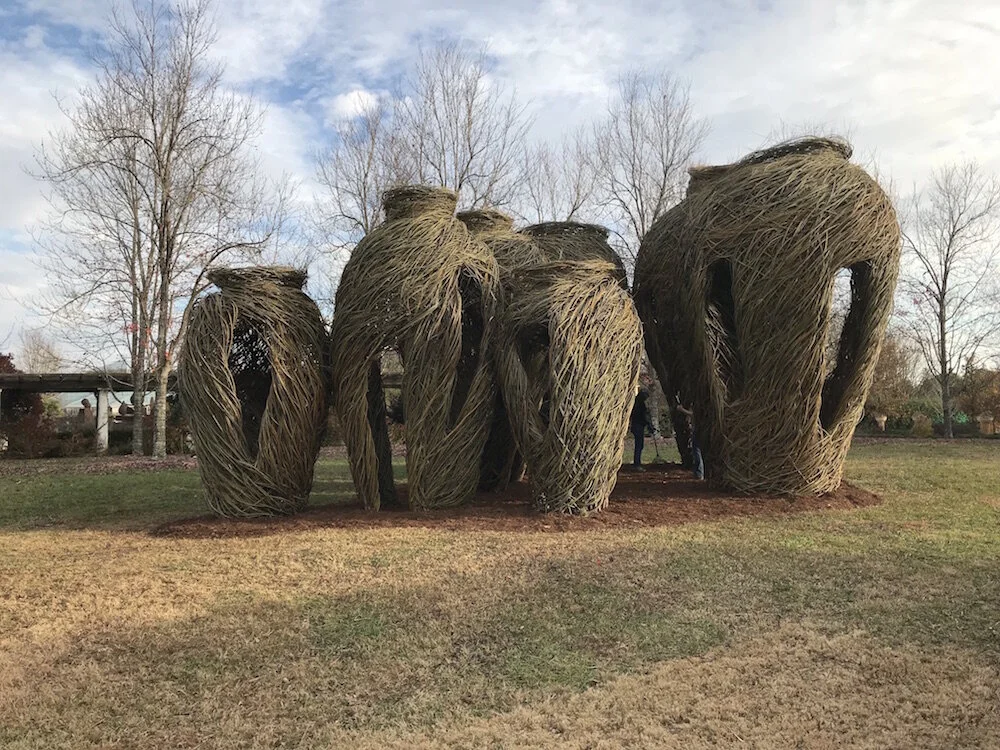 Using minimal tools and a simple technique of bending, interweaving and fastening together sticks, North Carolina artist Patrick Dougherty’s Stickwork exhibit engaged volunteers to create sculptures of nests, cocoons, cones, castles and beehives where visitors could explore and engage in this hands-on exhibit.
