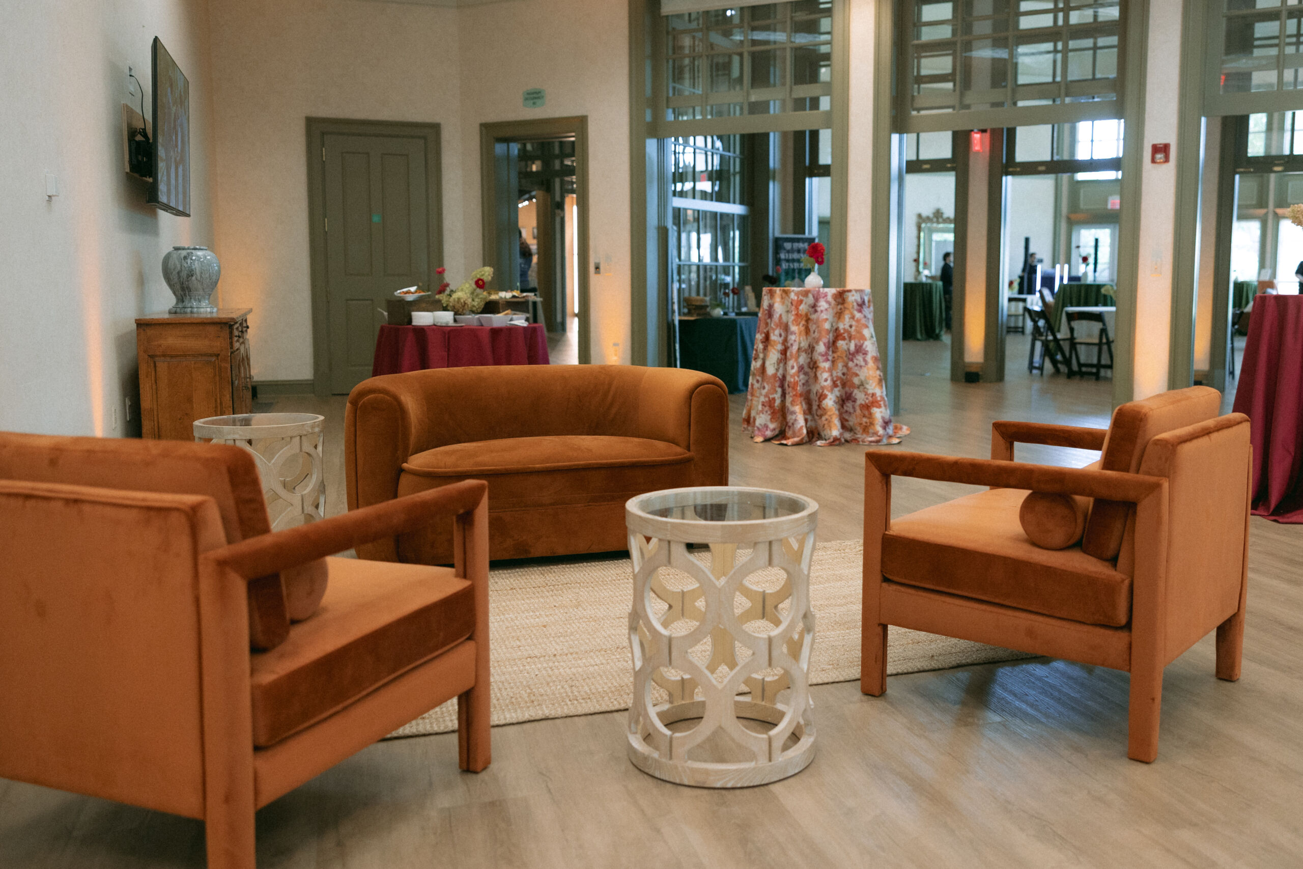 The Great Hall provides a classic ballroom feel for formal events. This beautiful indoor space is the perfect setting for a reception or cocktail hour, conference center, lecture, or dance floor.